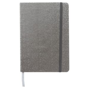 Libreta con pasta texturizada de apariencia metálica,...