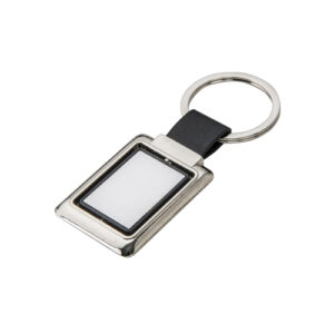 Llavero metálico de forma rectangular con centro...