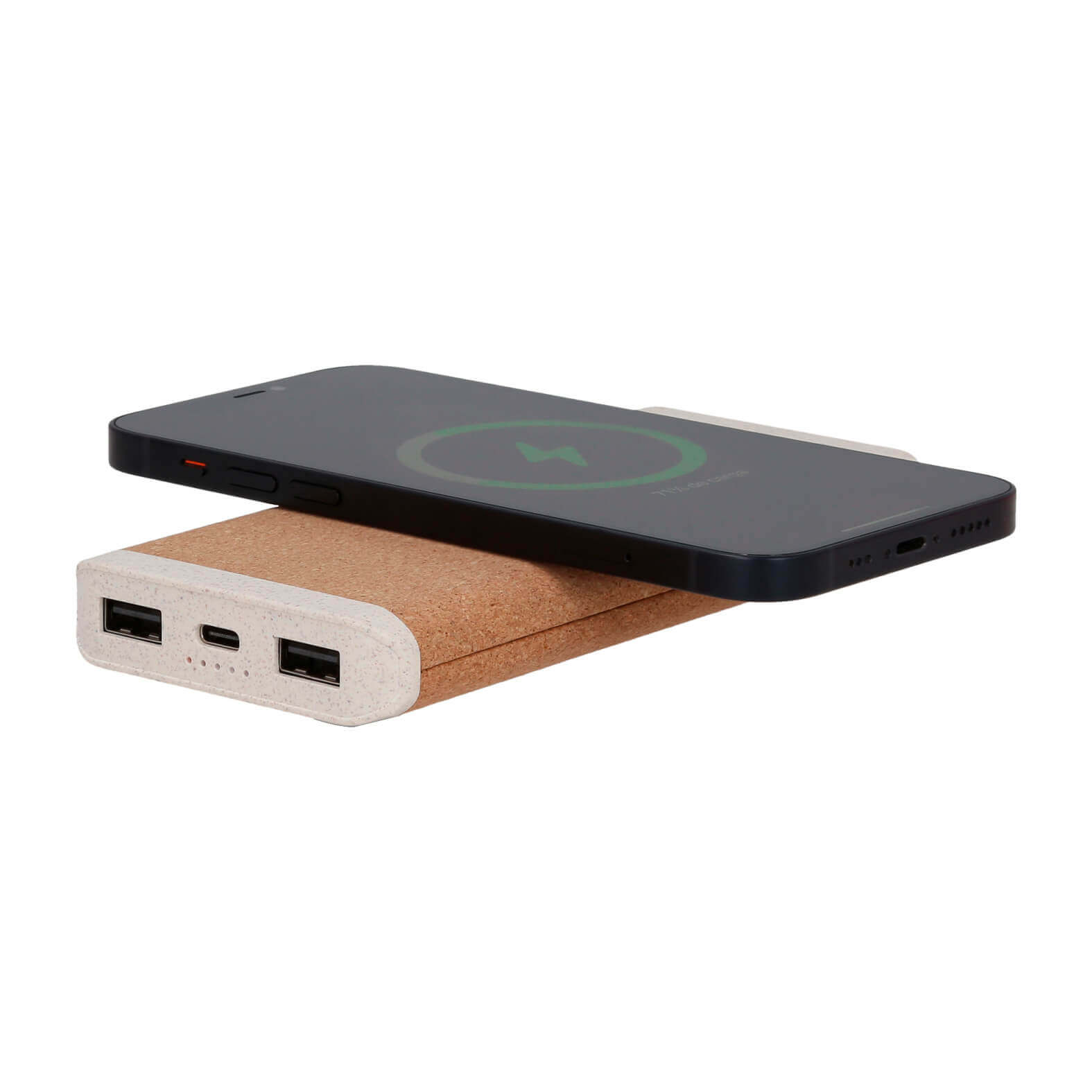 Power Bank de corcho con wireless charger de 10,000 mAh, 2 entradas USB y 1 tipo C. (Compatible con dispositivos con tecnología Qi).