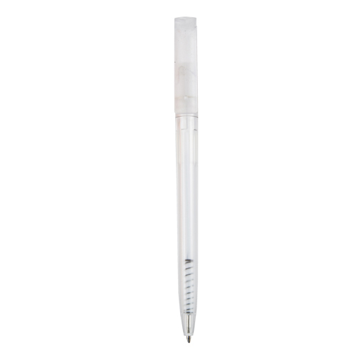 Bolígrafo de plástico traslúcido con mecanismo retráctil.