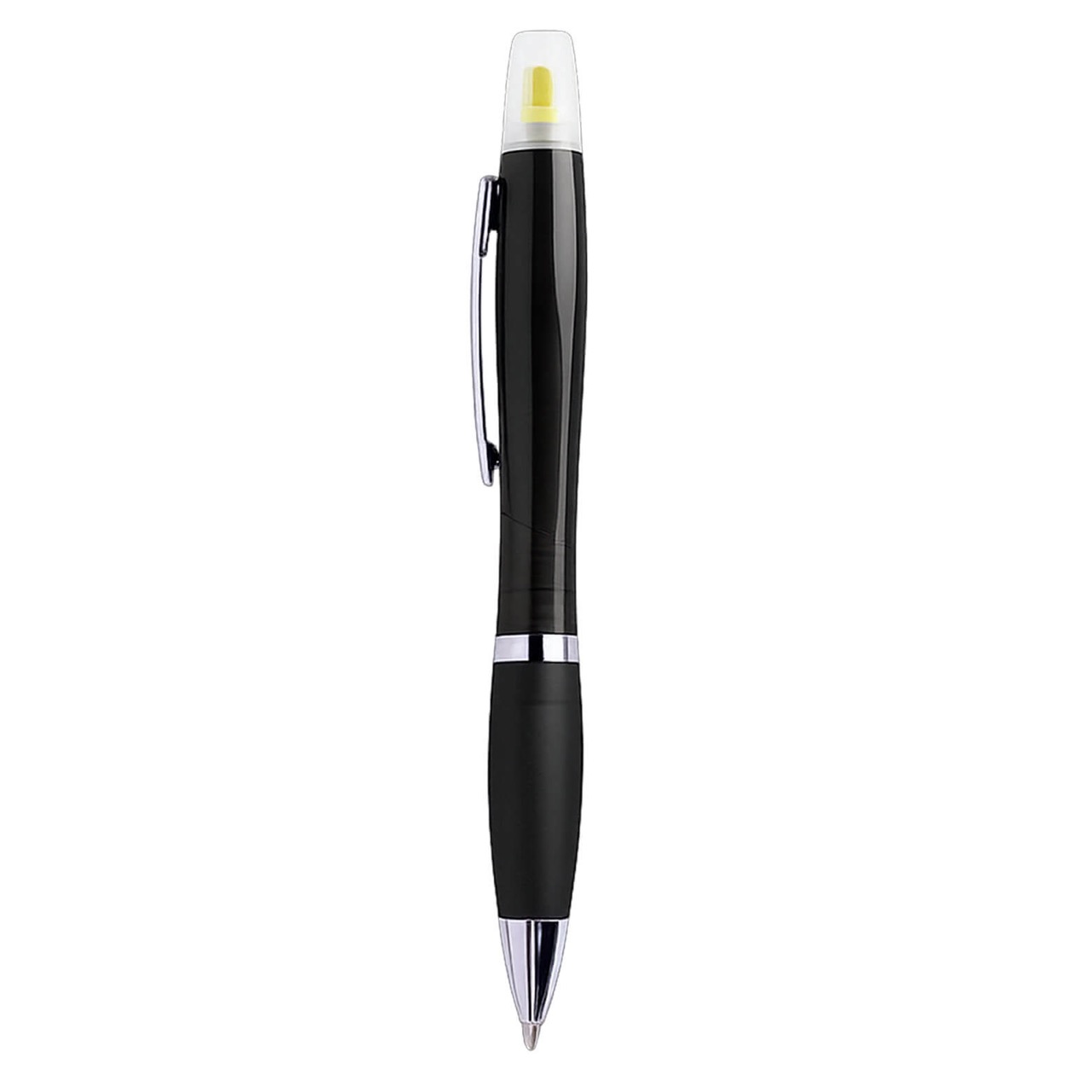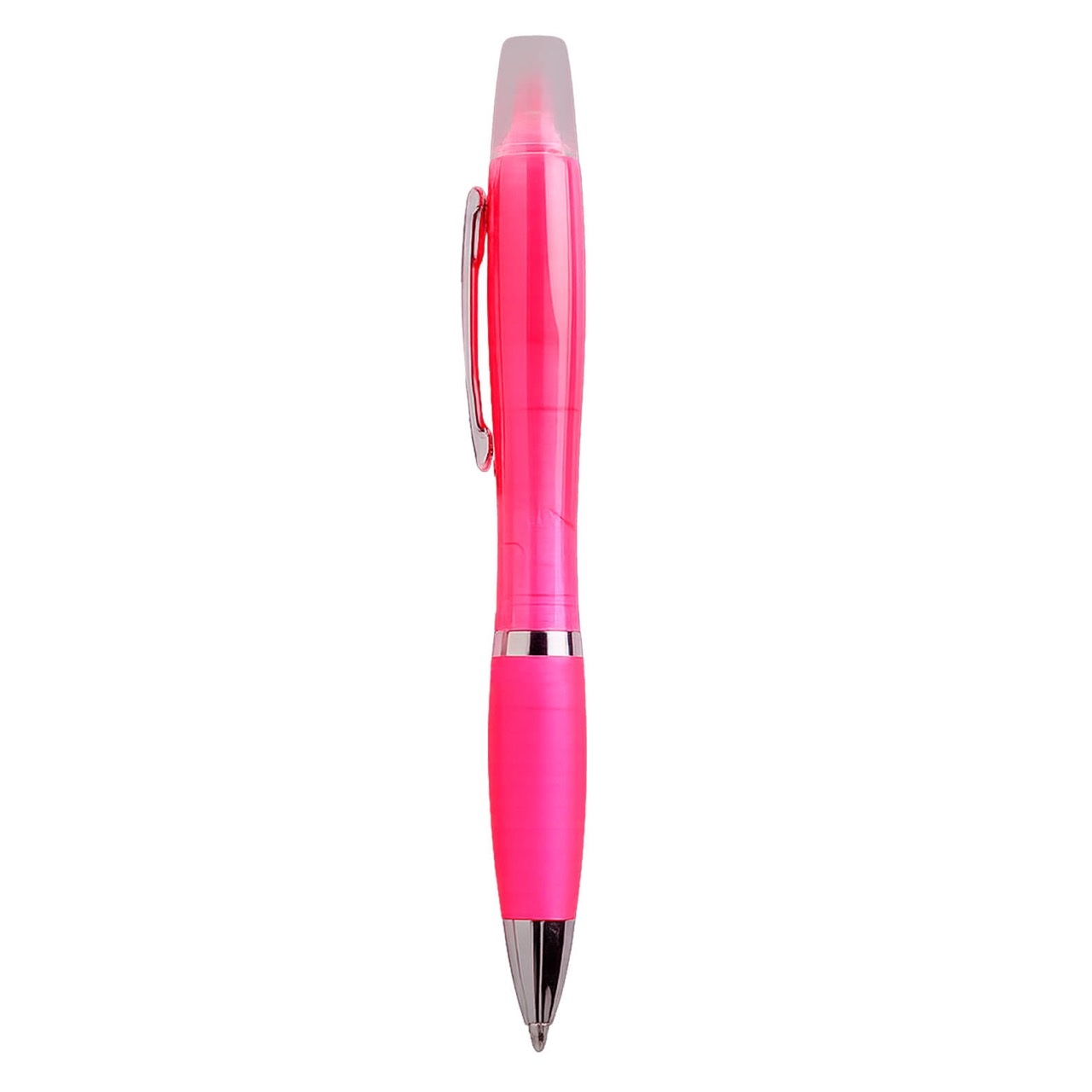 Bolígrafo de plástico de color traslúcido con marcatextos.