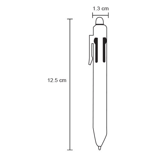 Bolígrafo 5 en 1. Incluye tinta negra, roja, azul, punta de grafito y goma.