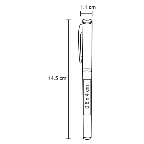 Bolígrafo de plástico con tinta de gel y apariencia metalizada.