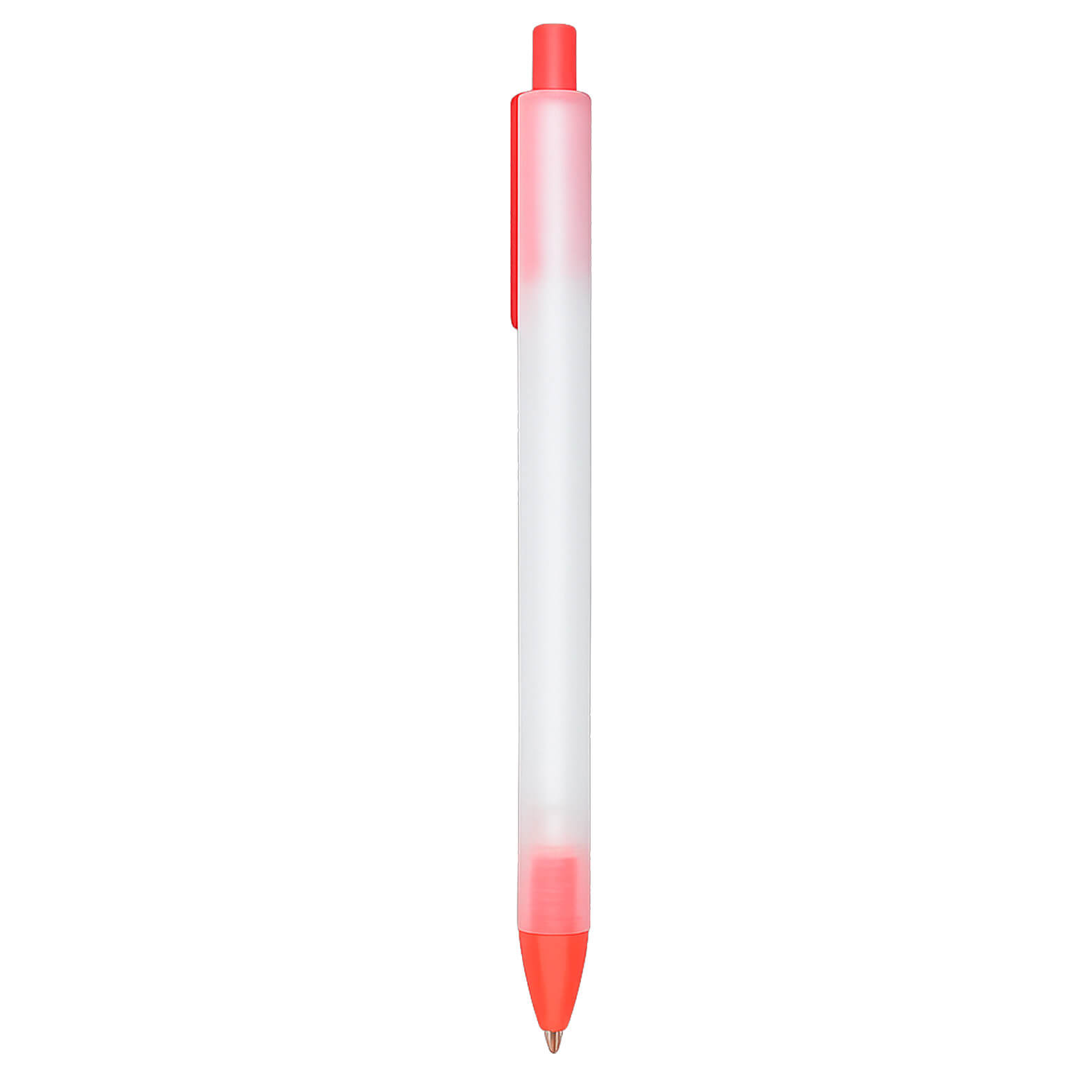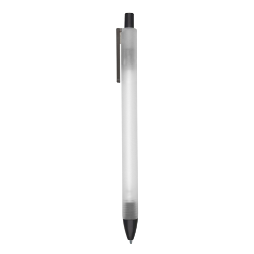 Bolígrafo de plástico con barril y clip traslúcido, con mecanismo de click.