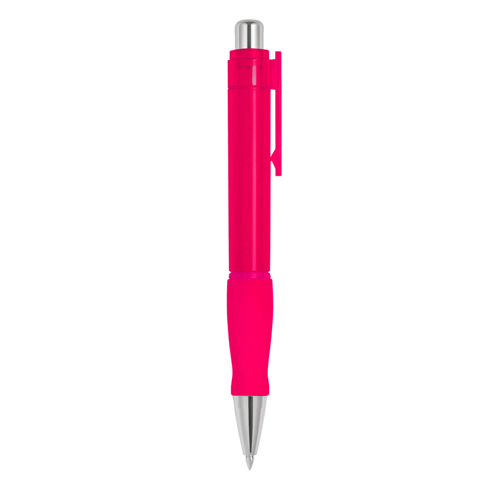 Bolígrafo de plástico traslúcido con grip de goma.