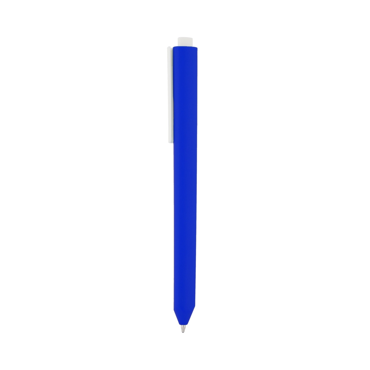 Bolígrafo de plástico de color sólido, con clip blanco y mecanismo de click.