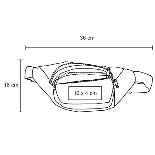 Cangurera deportiva con 3 compartimentos (2 delanteros y uno trasero) y cinturón ajustable.