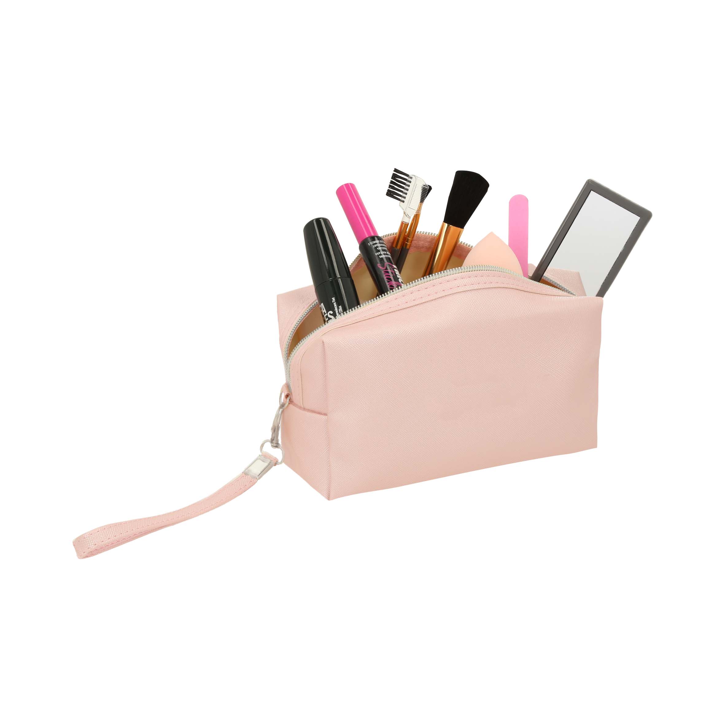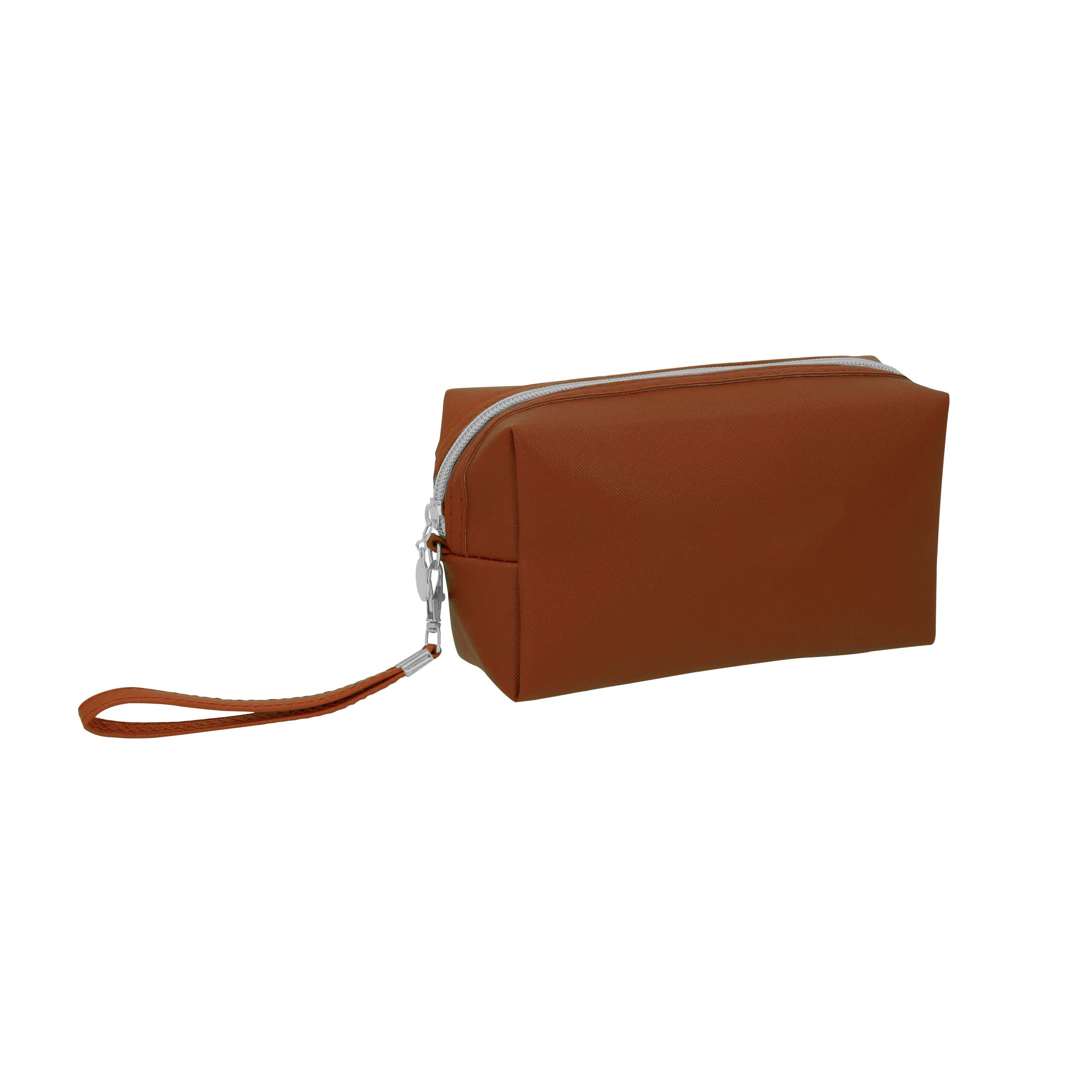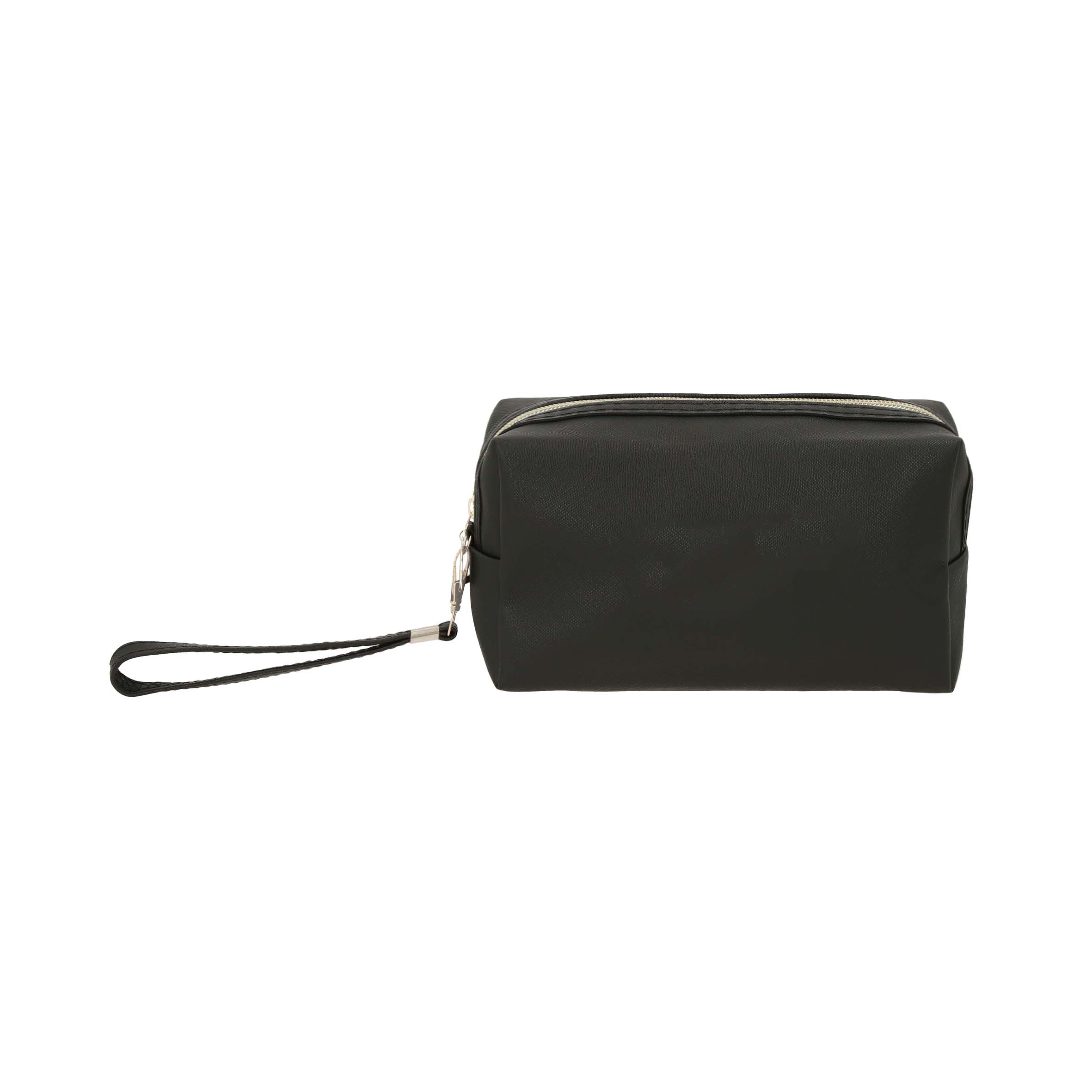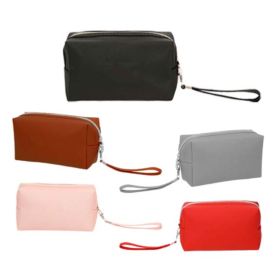 Cosmetiquera de curpiel con forro interior y correa.