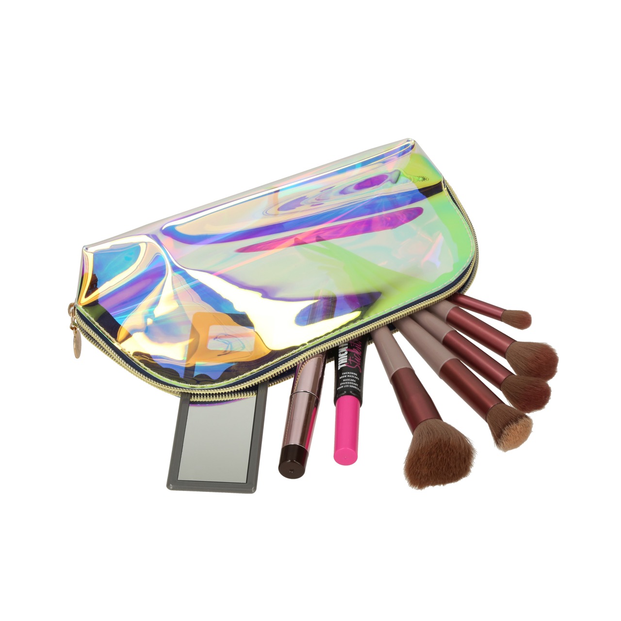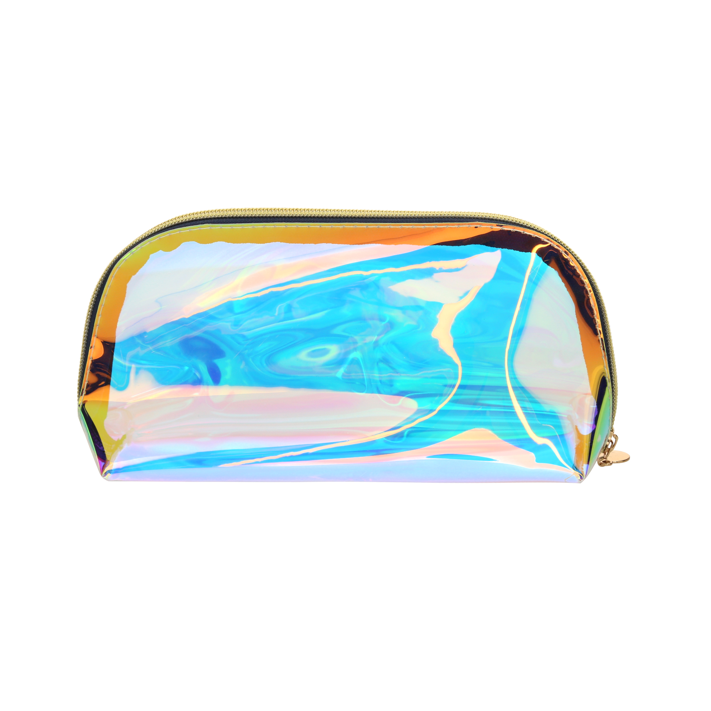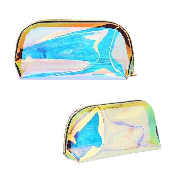 Cosmetiquera holográfica transparente.