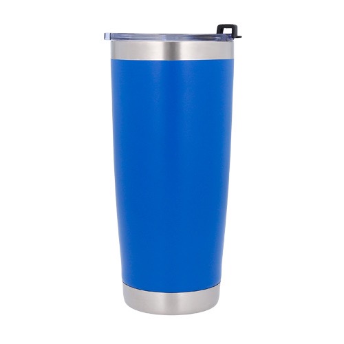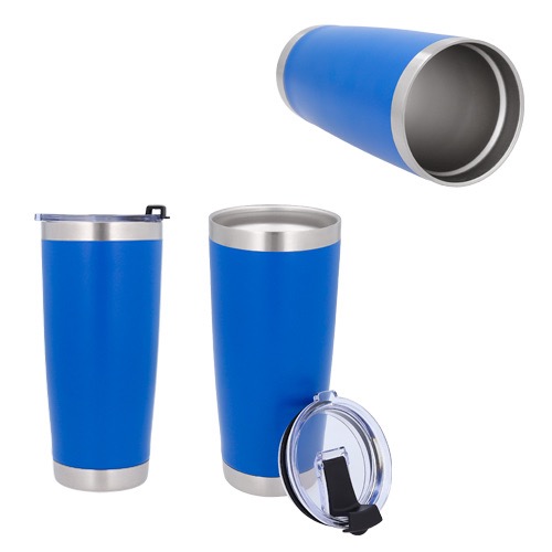 Termo insulado al vacío con doble pared de acero inoxidable y acabado rugoso. Incluye tapa de cierre a presión.