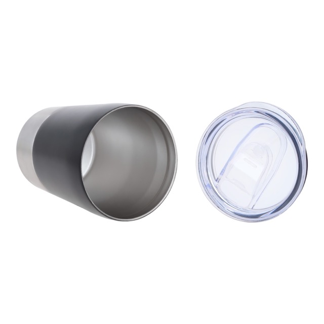 Termo de doble pared de acero inoxidable con tapa de cierre a presión.