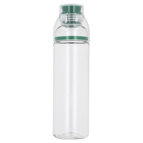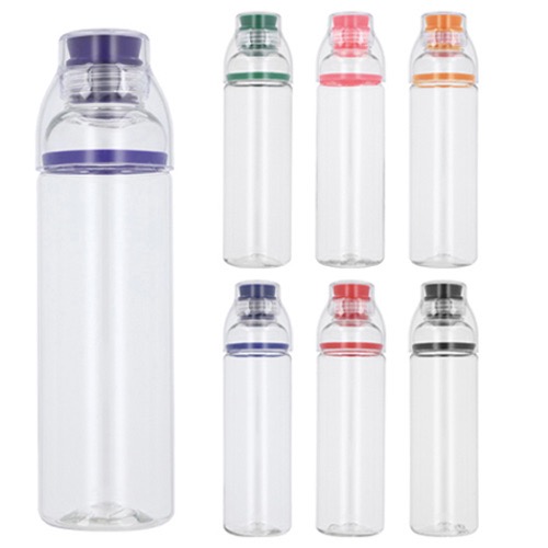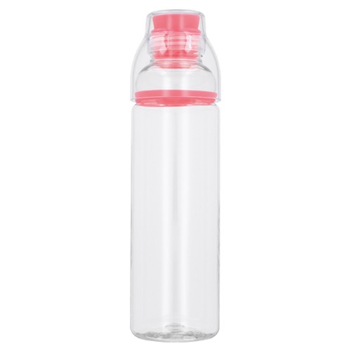 Cilindro de plástico con chupón de silicón y tapa que sirve como vaso.