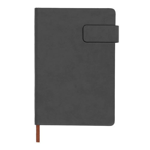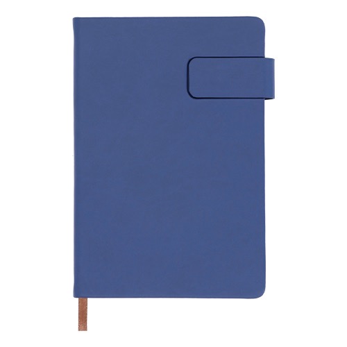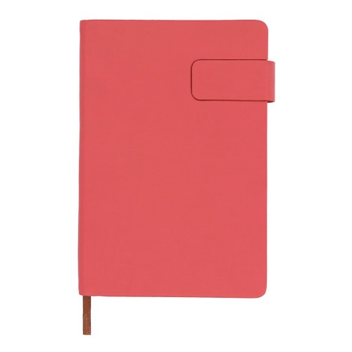 Libreta de poliuretano con broche magnético, 96 hojas rayadas y separador.