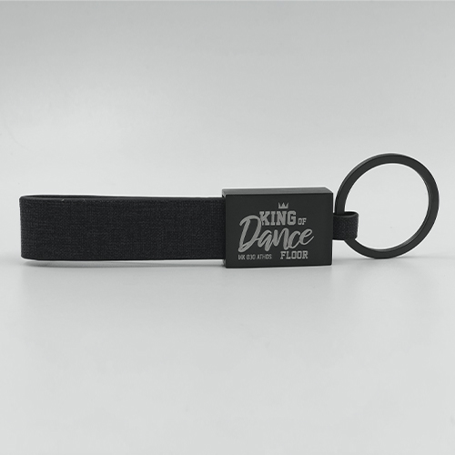 Llavero metálico con correa de curpiel y detalle texturizado.