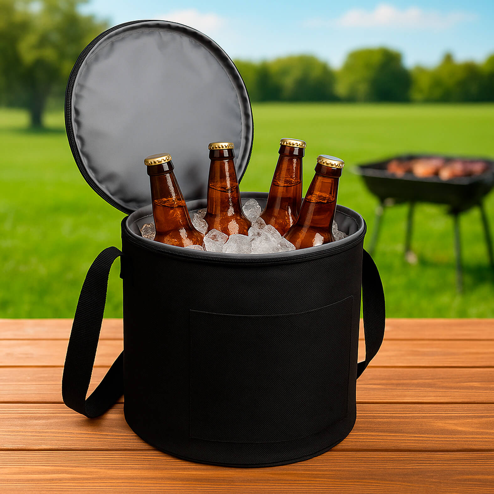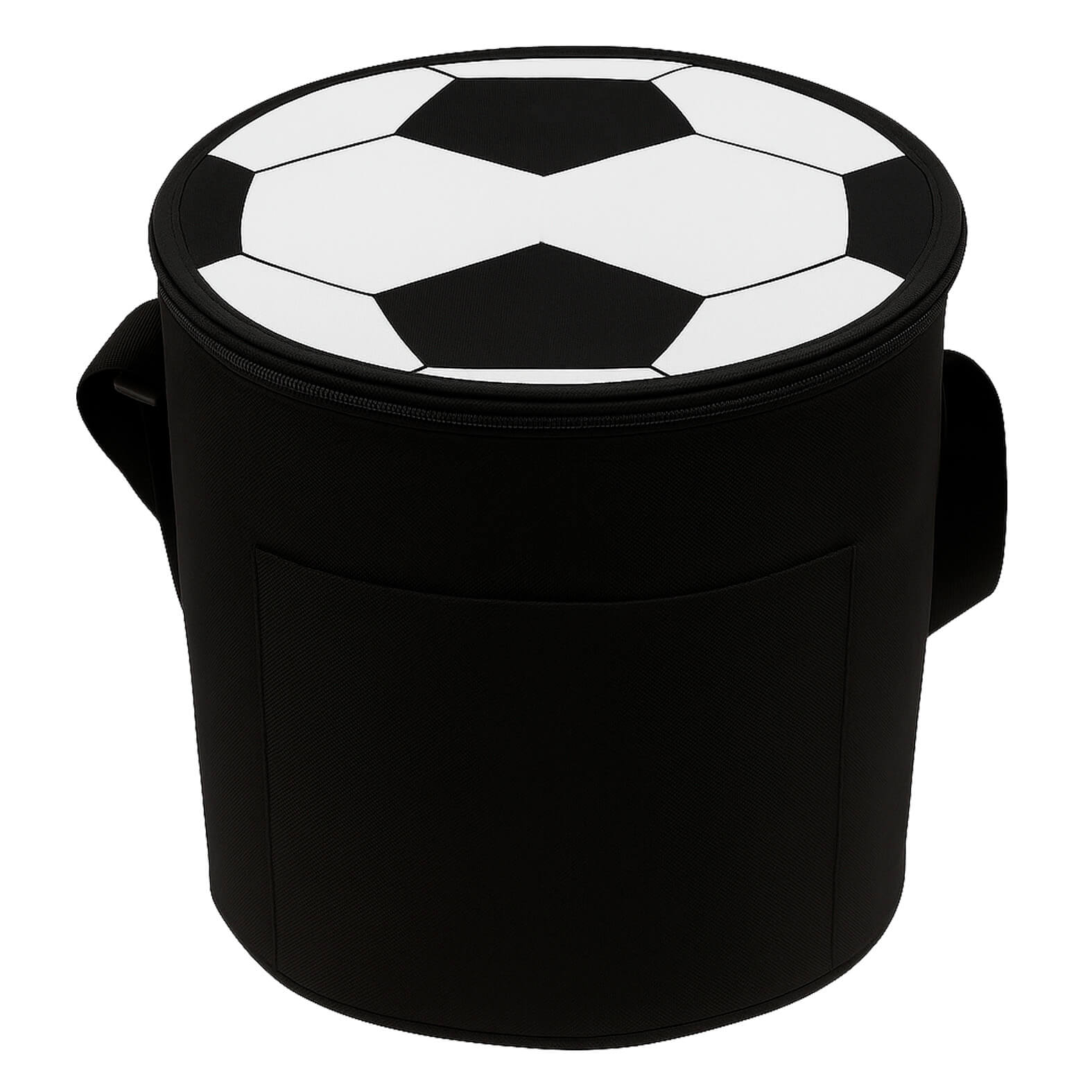 Lonchera con un compartimento interior permeable, cierre, print de balón de soccer y asa.