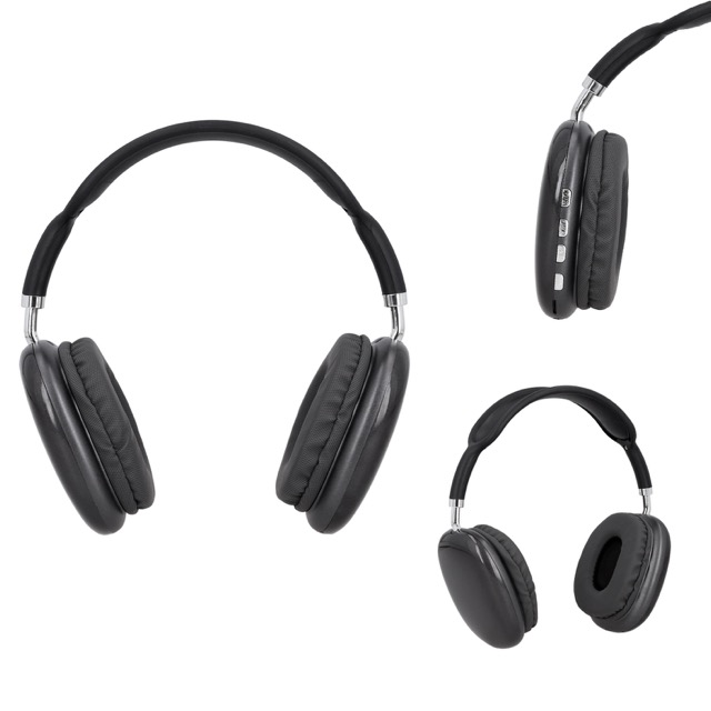 Audífonos bluetooth de plástico con función de manos libres, controles de llamada, volumen, reproducción de audio, botón de encendido y apagado que cuenta con entrada para tarjeta de memoria micro SD y auxiliar. Incluye cable de carga.