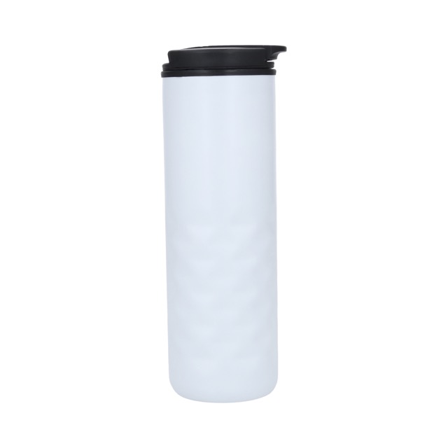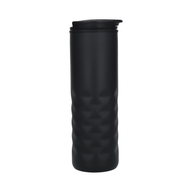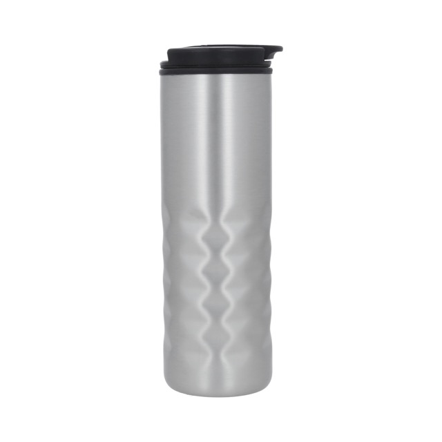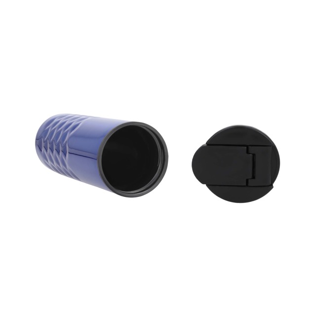 Termo con doble pared de acero inoxidable e interior de plástico. Incluye tapa enroscable y cierre de seguridad.