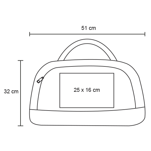 Maleta de poliéster, con compartimiento frontal, asas sujetadoras y asa regulable.