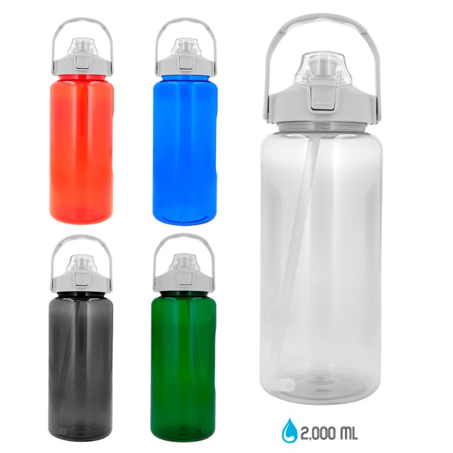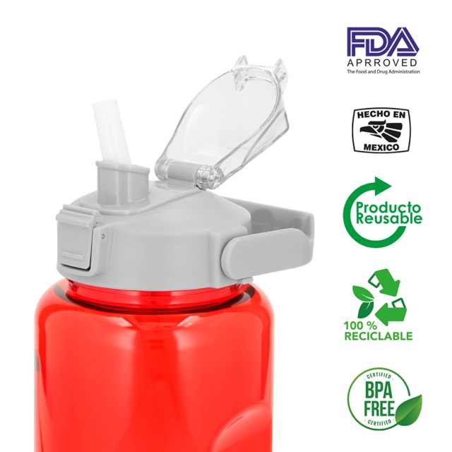Cilindro de plástico con tapa de seguridad, popote y asa.