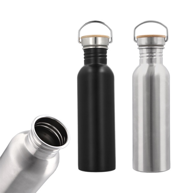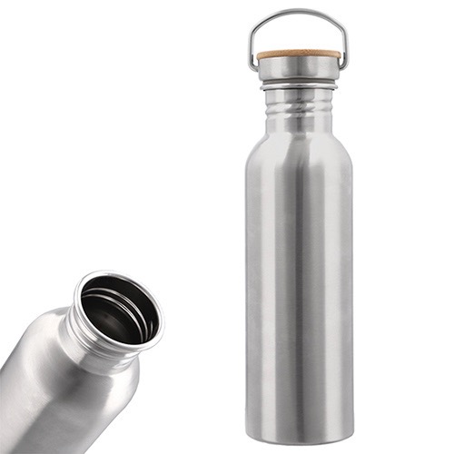 Cilindro de acero inoxidable con detalle de bambú en tapa.