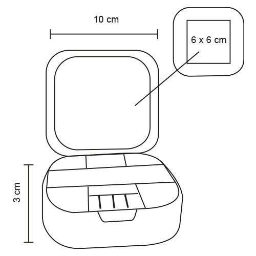 Organizador de joyas, cuenta con 6 compartimentos para accesorios, 3 ranuras para anillos y 1 espejo en la parte interior.