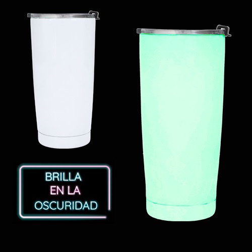 Termo insulado al vacío con doble pared de acero inoxidable que brilla en la oscuridad. Incluye tapa de cierre a presión.