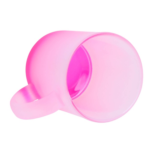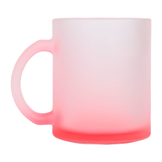 Taza de vidrio sublimable con acabado frost, degradado en la base y asa.