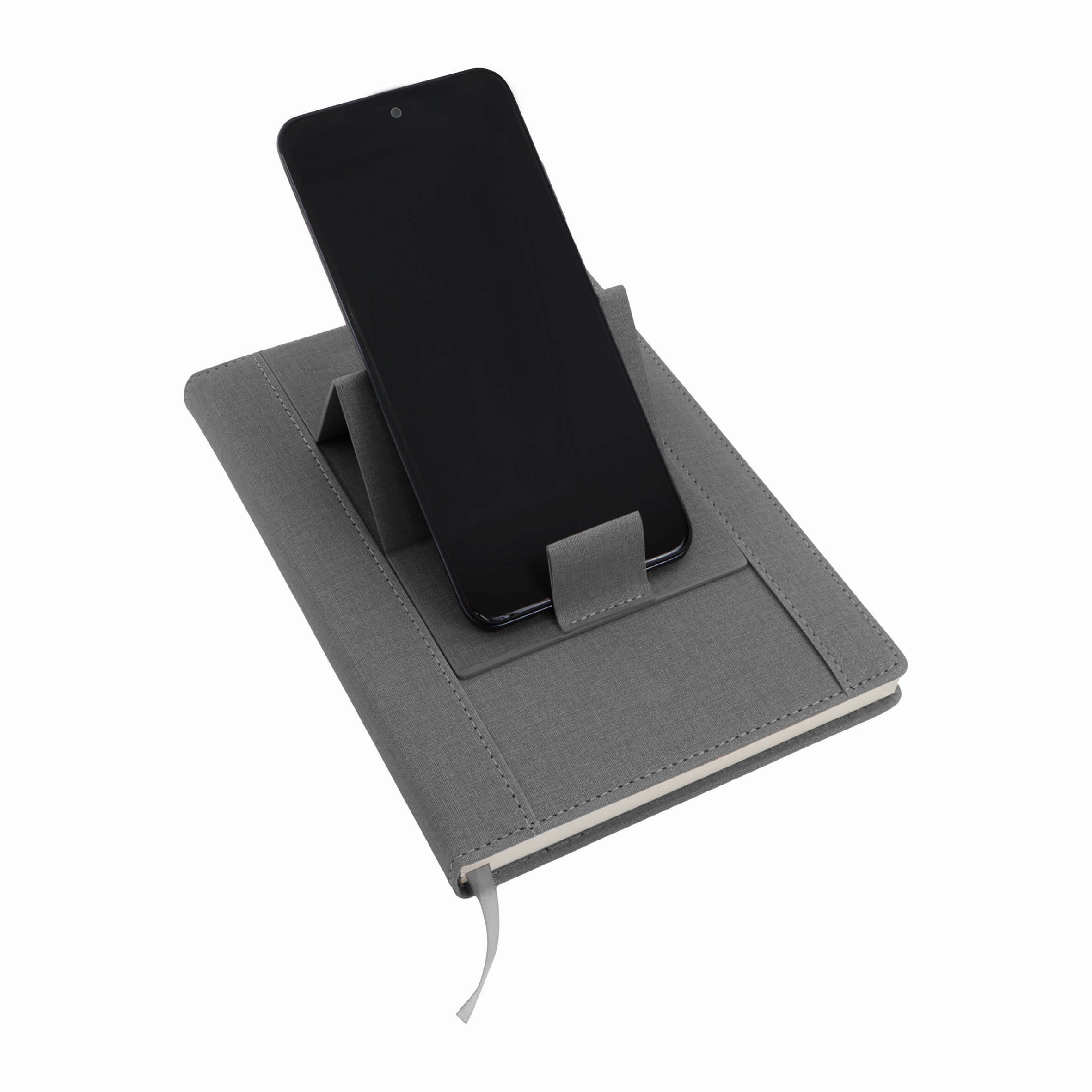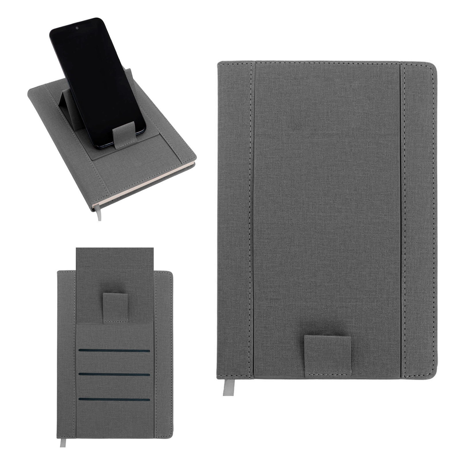 Agenda diaria con 104 hojas rayadas, con calendario de 2025 a 2029, portada ajustable que sirve como soporte para celular y tarjetero . Dentro de sus apartados contiene: datos personales, teléfonos de emergencia y festividades personales.