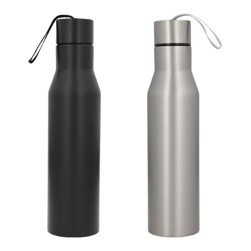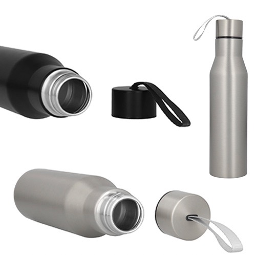 Cilindro de acero inoxidable, con tapa enroscable y correa de poliéster.
