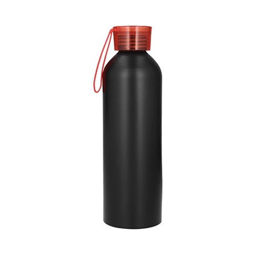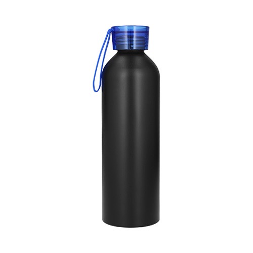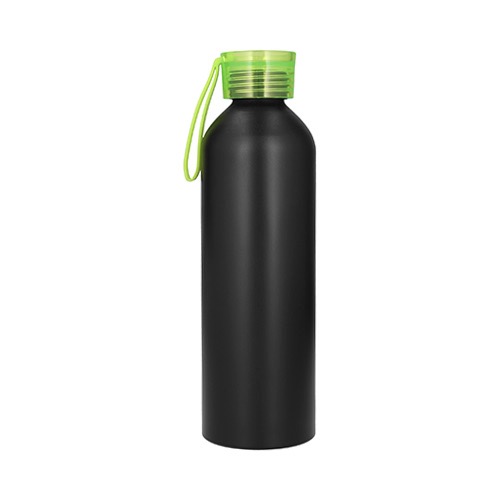Cilindro de acero inoxidable, con tapa de plástico traslúcida enroscable y correa de silicón.