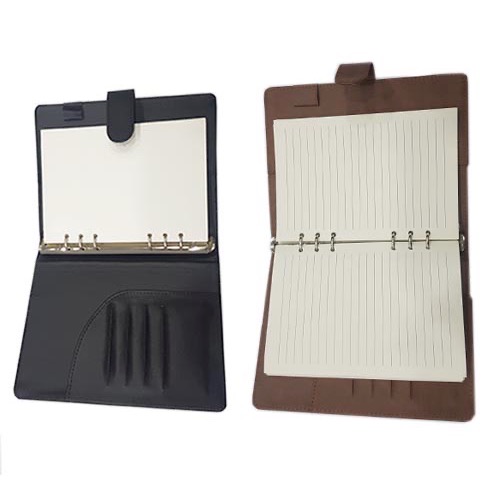 Carpeta de curpiel con block de 90 hojas de raya de 14.5 x 21 cm y arillo metálico.