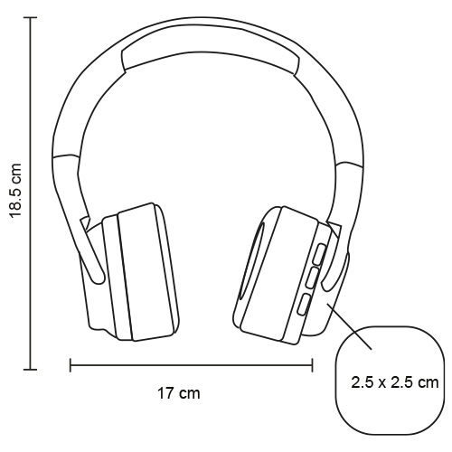 Audífonos inalámbricos plegables con diadema y orejeras acolchadas. Equipados con controles táctiles para adelantar/retroceder, ajustar el volumen y reproducir/pausar. Cuentan con micrófono, entrada TF, entrada auxiliar y radio FM, con tipo de carga C.