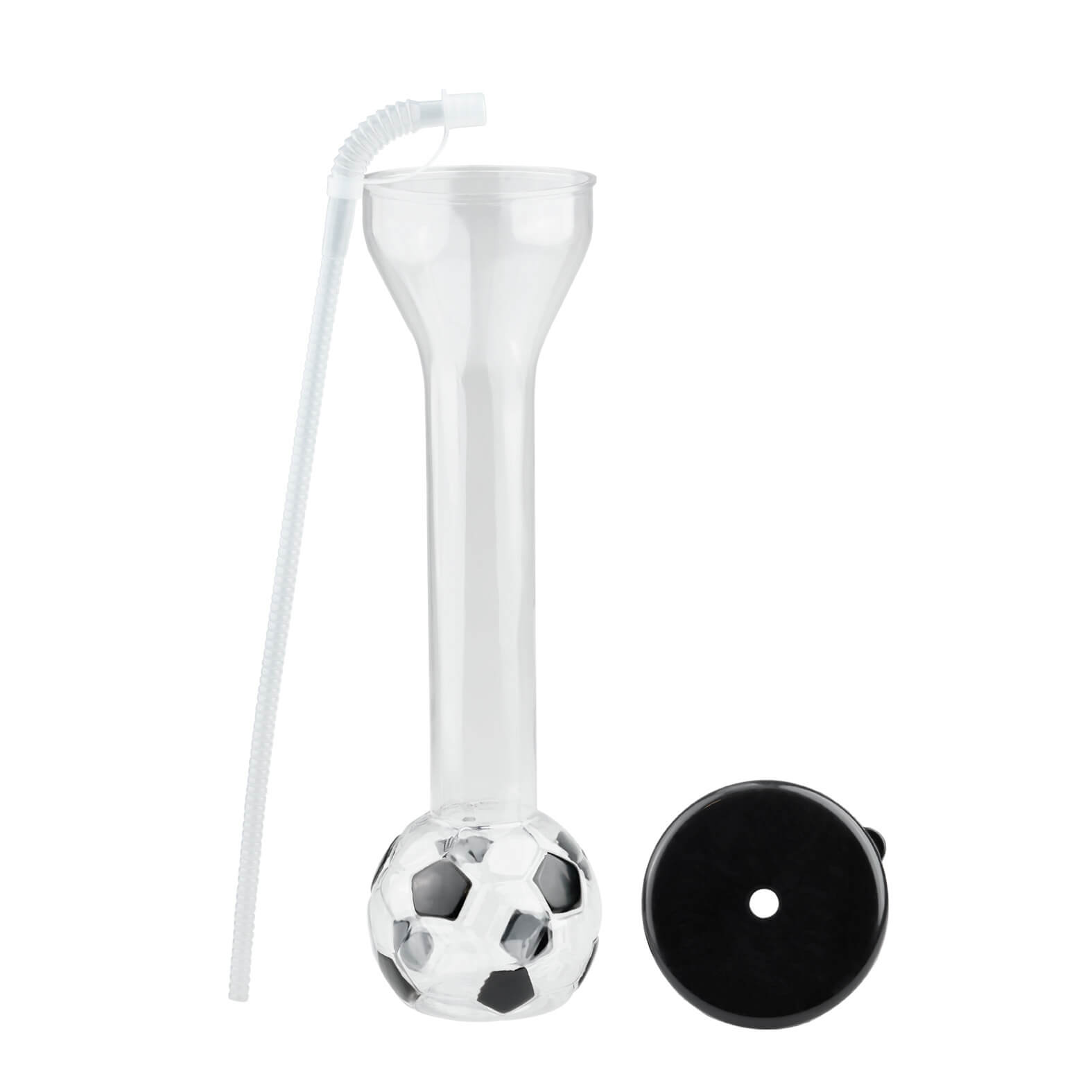 Yarda en forma de balón de soccer con tapa y popote.